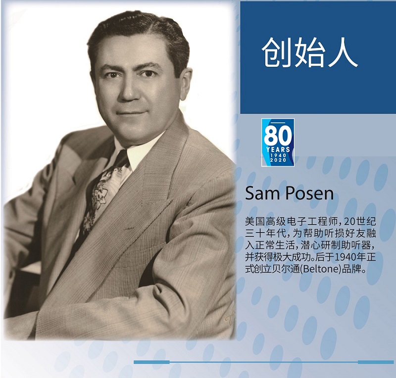 美國貝爾通(英文名:Beltone)的創(chuàng)始人Sam Posen為了幫助一位聽損朋友,設計開發(fā)出首款助聽器,美國貝爾通因愛而生,走過80個年頭,直至現(xiàn)在,仍然譜寫著屬于自己的輝煌篇章。