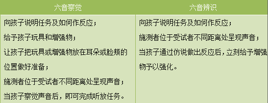 <span style="font-size:16px;"> 一、“林氏六音”是哪六音?為什么?</span></p><p><span style="font-size:16px;"> 林氏六音包括:m u a i sh s</span></p><p><span style="font-size:16px;"><br /></span></p><p style="text-align: center;"><span style="font-size:16px;"><img src="/upfiles/201803241040224081.jpg" width="640" alt="" /> </span></p><p><span style="font-size:16px;"><br /></span></p><p style="text-align: center;"><span style="font-size:16px;"><img src="/upfiles/201803241039414164.png" width="640" alt="" /><br /></span></p><p style="text-align: center;"><span style="font-size:16px;"><br /></span></p><p></p><p><span style="font-size:16px;"> 由常見聲音的頻譜圖和六音的頻率范圍我們可以發(fā)現(xiàn),林氏六音覆蓋的頻率范圍非常廣,如果這六個音能夠明確地辨識,則日常生活接觸到的大部分語言和聲音都不成問題。家長們一定要仔細觀察孩子對這六個音的反應并認真記錄,及時、準確地和聽力師說明,會對調配助聽設備有很大幫助。</span></p><p><span style="font-size:16px;"> 比如,在實際測試中助聽器如果高頻補償不到位,會出現(xiàn)s、sh辨識不清的情況,人工耳蝸植入者往往高頻聽得很好,但要注意低頻的i、m是否會混淆。</span></p><p><span style="font-size:16px;"><br /></span></p><p style="text-align: center;"><span style="font-size:16px;"><img src="/upfiles/201803241039518051.png" width="640" alt="" /><br /></span></p><p style="text-align: center;"><span style="font-size:16px;"><br /></span></p><p></p><p><span style="font-size:16px;"> 二、何時開始練習林氏六音?</span></p><p><span style="font-size:16px;"> 六音測試包括察覺和辨識,察覺最主要的方法是“六音聽放”,辨識的方法有指認、仿說、寫等。一歲以上的孩子就可以開始練習“六音聽放”了,有一定言語基礎后可以聽放和仿說結合或交替。</span></p><p><span style="font-size:16px;"> 在家中應該天天堅持做林氏六音測試,測試時家庭環(huán)境要保持安靜,要選擇孩子戴上助聽設備后且專注力比較好的時候,時間不宜過長。</span></p><p><span style="font-size:16px;"> 三、六音聽放的基本步驟與技巧</span></p><p><span style="font-size:16px;"> 1、如果是初學者,做之前要向孩子說明任務及如何作反應。(小齡的孩子可能聽不懂,需要再請另一位家長配合做示范。)</span></p><p><span style="font-size:16px;"> 2、施測者位于孩子聽力較好的耳朵的側面或側后方——給孩子玩具或者增強物,讓孩子把增強物放在耳朵或臉頰的位置做好準備。(戴耳蝸的孩子要避免磁性玩具。)</span></p><p><span style="font-size:16px;"> 3、等孩子準備好,再逐一發(fā)音——當孩子對聲音做出反應后,要立刻給予鼓勵。</span></p><p><span style="font-size:16px;"> 4、記錄孩子對六音的反應(很重要,尤其是聽不清楚或發(fā)錯的音,把發(fā)錯的音寫在正確的音后面記錄后可以拿給康復老師和聽力師作參考。)</span></p><p><span style="font-size:16px;"> 發(fā)音要求與技巧:</span></p><p><span style="font-size:16px;"> 1、一次一個刺激音,從最容易查覺的音(就是a)開始發(fā);</span></p><p><span style="font-size:16px;"> 2、以不規(guī)則的時間間隔發(fā)音(否則聰明的孩子很容易找到規(guī)律,測試會不準確);</span></p><p><span style="font-size:16px;"> 3、以正常的說話音量發(fā)音,不必刻意提高音量或加重語氣(家長常會測試時不自覺提高音量,大聲聽得清,正常音量聽不清,則失去了測試的意義);</span></p><p><span style="font-size:16px;"> 4、使用正常音長控制,不應故意拉長或刻意縮短;</span></p><p><span style="font-size:16px;"> 5、發(fā)音時不要給予孩子視覺或觸覺線索,遮口后,發(fā)音完手勿立刻放下;</span></p><p><span style="font-size:16px;"> 其他要注意的事:</span></p><p><span style="font-size:16px;"> 1、在孩子精神飽滿,專注力好的時候進行,結果的可信度會高;</span></p><p><span style="font-size:16px;"> 2、測試者不能一邊發(fā)音, 一邊帶孩子聽放(必須有一個人做示范,除非孩子年齡足夠理解在做什么);</span></p><p><span style="font-size:16px;"> 3、明確六音測試目標,不應邊測試邊進行其他領域目標;</span></p><p><span style="font-size:16px;"> 4、六音測試時間不宜過長。</span></p><p><span style="font-size:16px;"> 四、增強物---玩具的選擇</span></p><p><span style="font-size:16px;"> 選擇原則:</span></p><p><span style="font-size:16px;"> 1、趣味性高,可引起孩子興趣;</span></p><p><span style="font-size:16px;"> 2、符合孩子動作發(fā)展,容易抓握;</span></p><p><span style="font-size:16px;"> 3、簡單易操作,可在短時間內得到增強;</span></p><p><span style="font-size:16px;"> 4、能夠保證一次六音測試持續(xù)完成。</span></p><p><span style="font-size:16px;"> 最重要的是要了解自己的孩子喜歡什么樣的玩具,多嘗試與開發(fā),否則天天做同樣的孩子很容易厭煩的。例如:套圈/套塔、積木、嵌板、拼圖、蓋印章、投球、活動、釣魚/撈魚活動、串珠等等。</span></p><p><span style="font-size:16px;"> 更多詳情請登錄www.caosairsoft.com。</span></p>" />