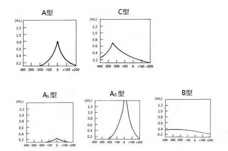 鼓室聲導(dǎo)抗就是通過對(duì)鼓膜外側(cè)聲能傳遞過程的變化的測(cè)量,了解中耳功能的狀態(tài)。鼓室聲導(dǎo)抗不僅可以診斷中耳是否存在病變,而且由于不同中耳病變對(duì)聲音由中耳傳入內(nèi)耳方式的影響不同,還可以鑒別不同的中耳病變。鼓室聲導(dǎo)抗的峰壓位置、幅度以及整體的形態(tài)與中耳的病變密切相關(guān),因此,鼓室導(dǎo)抗圖可分為三種類型: