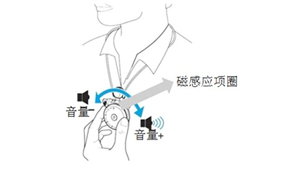 磁感應項圈可佩戴在用戶的脖子上,將接收器發出的信號轉變為磁信號,通過助聽器內的拾音線圈進行接收。