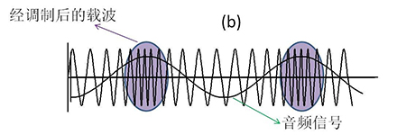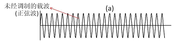 如圖a所示,當沒有信號通過時,載波為正弦波,不傳輸任何聲音信息;