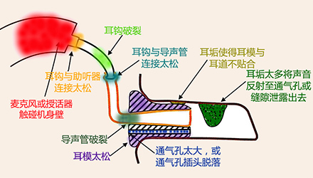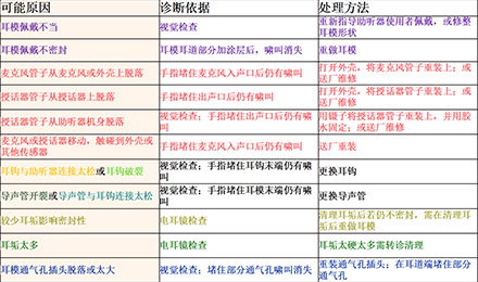 <span style="font-size:16px;"> 嘯叫,一直是引起助聽器使用者不滿的一大原因,也是驗配師在助聽器調試時最為棘手的難題之一。</span></p><p><span style="font-size:16px;"> 通常,嘯叫分內部嘯叫和外部嘯叫。內部嘯叫常由內部零件故障引起,而外部嘯叫則是與助聽器外殼或耳模,助聽器調試等有關。</span></p><p style="text-align: center;"><span style="font-size:16px;"><img src="/upfiles/201810100140556872.jpg" alt="" /><br /></span></p><p><span style="font-size:16px;"> 我們常常說的外部嘯叫是在聲音被麥克風拾取、放大器放大、授話器轉換后,又從各種縫隙(如外殼與耳道的縫隙、通氣孔)中“跑”出來,又“跑”進去,如此反復多次,使得聲音越來越大,產生“吱吱吱”的惱人嘯叫。</span></p><p><span style="font-size:16px;"> 以助聽器的角度來看,shou話器把聲音授給耳朵聽,當用“授”,即授話器。</span></p><p><span style="font-size:16px;"> 接下來將分別針對定制式(ITE/ITC/CIC)和耳背式(BTE)助聽器的嘯叫問題,跟著產生嘯叫的路徑,一一“攻破”嘯叫難題。注意,這里不說助聽器調試,只尋嘯叫路徑,并“堵死”嘯叫“通路”,讓進入助聽器的聲音“不走回頭路”。</span></p><p><span style="font-size:16px;"> 1、ITE/ITC/CIC助聽器</span></p><p><span style="font-size:16px;"> 先來看看ITE/ITC/CIC助聽器可能發生嘯叫的路徑。</span></p><p><span style="font-size:16px;"> 圖1里是一個定制式助聽器佩戴于外耳道內的示意圖,各種顏色的字和相應顏色的標記展示了發生嘯叫的各種情況。</span></p><center><span style="font-size:16px;"><img alt="" src="/upfiles/201810100142273990.png" width="440" height="250" /></span></center><p></p><p style="text-align: center;"><span style="font-size:16px;">圖1:ITE/ITC/CIC助聽器發生嘯叫的路徑一覽</span></p><p style="text-align: left;"><span style="font-size:16px;"> 例如,紅色表示“麥克風管子脫落”,這屬于助聽器內部零件脫落、故障,為內部嘯叫。</span></p><p><span style="font-size:16px;"> 橙色表示“外殼佩戴太松”,這屬于外殼不密封的聲音泄露,為外部嘯叫。</span></p><p><span style="font-size:16px;"> 那如何檢查出是這些原因,并對問題進行相應處理呢?請對照表1中的“診斷依據”和“處理方法”查看。</span></p><center><span style="font-size:16px;"><img alt="" src="/upfiles/201810100142337254.png" width="520" height="250" /></span></center><p></p><p style="text-align: center;"><span style="font-size:16px;">表1:ITE/ITC/CIC助聽器產生嘯叫的可能原因及對應的診斷依據、處理方法</span></p><p><span style="font-size:16px;"> 例如,當發現“手指堵住麥克風入聲口后仍有嘯叫”,可推斷原因是“麥克風管子從麥克風或外殼上脫落”或“麥克風或授話器移動,觸碰到外殼或其他傳感器”,這時的處理方法是“送廠維修”。</span></p><p><span style="font-size:16px;"> 2、BTE助聽器</span></p><p><span style="font-size:16px;"> 學會了看ITE/ITC/CIC助聽器的一圖一表,再來看看BTE助聽器的嘯叫路徑圖(圖2),以及表2中羅列的可能原因、診斷依據和處理方法,相信看起來更加輕松、直觀、一目了然。</span></p><center><span style="font-size:16px;"><img alt="" src="/upfiles/201810100142383483.png" width="440" height="250" /></span></center><p></p><p style="text-align: center;"><span style="font-size:16px;">圖2:BTE助聽器發生嘯叫的路徑一覽</span></p><center><span style="font-size:16px;"><img alt="" src="/upfiles/201810100142449945.png" width="462" height="273" /></span></center><p></p><p style="text-align: center;"><span style="font-size:16px;">表2:BTE助聽器產生嘯叫的可能原因及對應的診斷依據、處理方法</span></p><p><span style="font-size:16px;"> 更多詳情請登錄www.caosairsoft.com。</span></p>" />