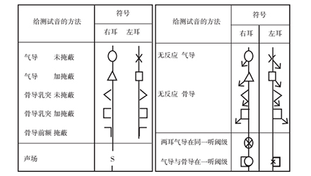 <span style="font-size:16px;"> 橫坐標(biāo)代表頻率,以倍頻程為單位分隔——請(qǐng)記住倍頻程的概念,它指兩個(gè)頻率間的間隔,高頻是相鄰低頻的兩倍;縱坐標(biāo)代表強(qiáng)度。右耳氣導(dǎo)用紅色“O”標(biāo)記,左耳用藍(lán)色“X”標(biāo)記,閾值就是頻率與強(qiáng)度的交叉點(diǎn)位置。比如某人左耳在250Hz處的聽(tīng)閾是30dBHL,則在250Hz這一軸線上30dBHL中點(diǎn)劃一藍(lán)叉。30dBHL是聽(tīng)閾,正常人的聽(tīng)閾是-10dBHL~25dBHL,也就是說(shuō),這個(gè)人的聽(tīng)力損失(也可稱做聽(tīng)敏度下降)只有5dBHL。</span></p><center><img src="/upfiles/20181015013344992.png" alt="" /><br /></center><p></p><p style="text-align: center;"><span style="font-size:14px;">國(guó)家統(tǒng)一聽(tīng)力標(biāo)記符號(hào)</span></p><p><span style="font-size:16px;"> 用聽(tīng)力圖表示聽(tīng)閾級(jí)時(shí),應(yīng)采用上表所給符號(hào),對(duì)氣導(dǎo)相鄰點(diǎn)用直線連接,骨導(dǎo)用虛線連接。如在聽(tīng)力計(jì)最大輸出級(jí)仍無(wú)反應(yīng),可在相應(yīng)符號(hào)處垂直向下畫(huà)一箭頭,或在符號(hào)的下外角與垂直方約成45°角向下畫(huà)圖一箭頭(即左耳符號(hào)箭頭向右,右耳符號(hào)箭頭向左)。無(wú)反應(yīng)的符號(hào)記在聽(tīng)力圖上代表聽(tīng)力計(jì)最大輸出的聽(tīng)力級(jí)處。如用彩色筆記錄,右耳符號(hào)和連線為紅色,左耳符號(hào)與連線為藍(lán)色。從篩選測(cè)聽(tīng)法得出的結(jié)果應(yīng)清楚地照此表示出來(lái)。</span></p><p><span style="font-size:16px;"> 更多詳情請(qǐng)登錄www.caosairsoft.com</span></p>" />