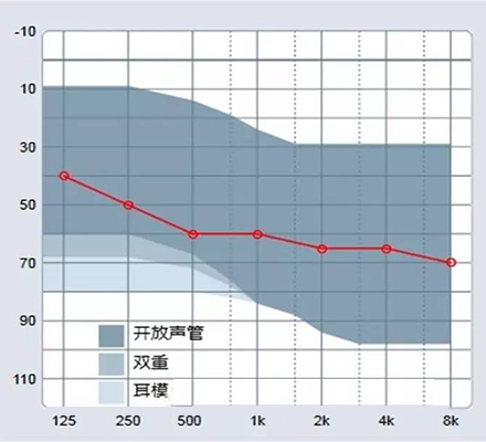 <span style="font-size:16px;"> 選擇助聽器時(shí)聽力損失者首先考慮的是“聽得清不清楚”——這就涉及到選擇何種放大線路,是決定型號(hào)的主要因素;其次考慮“美觀嗎?舒服嗎?”——這就涉及到外觀選擇,是決定型號(hào)的次要因素。</span></p><p><span style="font-size:16px;"> 但聽力損失者的喜好不一定符合聽力需求,驗(yàn)配師還需要運(yùn)用專業(yè)的聽力學(xué)知識(shí)和豐富的經(jīng)驗(yàn)分析“功率夠不夠?余量有多少?是否有禁忌癥?”以判斷選擇的型號(hào)是否符合聽力損失者的聽力狀況,幫助他們選擇。</span></p><p><span style="font-size:16px;"> 一般情況下,驗(yàn)配師都會(huì)推薦比聽力損失曲線多出約10-20分貝余地的助聽器型號(hào)給聽力損失患者。比如,聽力損失為90分貝,則應(yīng)推薦100-110分貝的助聽器型號(hào)以防止一旦聽力損失患者聽力下降后,助聽器無多余增益可調(diào)的情況出現(xiàn)。</span></p><p><span style="font-size:16px;"> 但受到聽力損失患者對(duì)助聽器外觀的限制,往往不能達(dá)到這個(gè)理想狀態(tài),有可能只能選擇95分貝,甚至是90分貝功率的助聽器。</span></p><p><span style="font-size:16px;"> 在聽力曲線接近“參考驗(yàn)配范圍”甚至略微超出的情況下,驗(yàn)配師選擇助聽器功率時(shí)就會(huì)猶豫:聽力曲線超出驗(yàn)配范圍一點(diǎn)行不行呢?雙耳驗(yàn)配是否可以超出多一點(diǎn)?把試聽的大功率耳背機(jī)調(diào)小一些能否代表小功率定制機(jī)的效果?</span></p><p><span style="font-size:16px;"> 為了解釋這個(gè)問題,需要理解最大輸出能力(飽和聲壓級(jí))和最大放大能力(滿檔聲增益)這2個(gè)判斷助聽器大小標(biāo)準(zhǔn)的意義。</span></p><p><span style="font-size:16px;"> 測(cè)量助聽器用的是dB SPL(Sound Pressure Level聲壓級(jí))單位,是聲音真實(shí)的強(qiáng)度級(jí)別,最小是0。聽力圖是以dB HL(Hearing Level聽力級(jí))為單位的,聽力級(jí)選用18-25歲的正常聽力成人進(jìn)行測(cè)聽,將這些人在各個(gè)頻率處聽到的最小聲壓級(jí)定為0 dB HL,負(fù)數(shù)代表聽力比一般人好。dB HL和dB SPL之間可以進(jìn)行轉(zhuǎn)換,各頻率差值不同:</span></p><p><span style="font-size:16px;"> </span></p><center><span style="font-size:16px;"><img alt="" src="/upfiles/201811070140306681.png" width="440" /></span></center><p></p><p><span style="font-size:16px;"> 以下圖所示的平均聽力損失62.5dB HL為例,白色代表能聽到的范圍,灰色代表聽不到的范圍。</span></p><p><span style="font-size:16px;"> </span></p><center><span style="font-size:16px;"><img alt="" src="/upfiles/2018110701403495.png" width="440" /></span></center><p></p><p><span style="font-size:16px;"> 價(jià)格單中矩陣119/60助聽器的參考驗(yàn)配范圍一般寫100dB HL左右,但從下圖驗(yàn)配范圍陰影看1000Hz處陰影只到85dB HL,用戶使用這款機(jī)器究竟能聽到什么范圍的聲音呢?</span></p><p><span style="font-size:16px;"> </span></p><center><span style="font-size:16px;"><img alt="" src="/upfiles/201811070140398624.png" width="440" /></span></center><p></p><p><span style="font-size:16px;"> 在軟件輸出圖中,因輸出圖的單位是dB SPL,聽力圖的單位是dBHL,通過上文提到的單位間轉(zhuǎn)換,所以輸出圖中代表聽力圖的曲線會(huì)有變化。圖中白色部分是助聽器的輸出,以及用戶也能聽到的范圍。飽和聲壓級(jí)和滿檔聲增益是曲線,矩陣“119/60”測(cè)量的是1.6kHz處的數(shù)值,接下來我們來分析下圖中紫色方框內(nèi)的范圍。</span></p><p><span style="font-size:16px;"> </span></p><center><span style="font-size:16px;"><img alt="" src="/upfiles/201811070140438218.png" width="440" /></span></center><p></p><p><span style="font-size:16px;"> 藍(lán)點(diǎn)剛好是最大輸出和用戶不舒適閾的重合點(diǎn),大約123dB SPL,紅點(diǎn)是聽閾大約76dB SPL,用戶可以聽到助聽器輸出的76-123 dB SPL之間的聲音。</span></p><p><span style="font-size:16px;"> 輸出-增益=輸入</span></p><p><span style="font-size:16px;"> 聽閾76dB SPL -滿檔聲增益60 dB =16dB SPL</span></p><p><span style="font-size:16px;"> 助聽器可以把一個(gè)最小16dB SPL的聲音放大到用戶聽閾,換句話說用戶在1.6kHz處能聽到16dB SPL至123dB SPL之間的聲音,當(dāng)然這只是理論數(shù)據(jù),實(shí)際輸出時(shí)還要考慮壓縮降噪等等對(duì)聲音的處理和過濾。</span></p><p><span style="font-size:16px;"> 同樣的方法計(jì)算一下矩陣113/40助聽器能聽到的范圍。最大輸出就算113 dB SPL,聽閾76dB SPL -滿檔聲增益40 dB =36dB SPL,因此,能聽到36dB SPL至113dB SPL之間的聲音。比矩陣為119/60的助聽器聽到的聲音少。</span></p><p><span style="font-size:16px;"> 現(xiàn)在再來分析前文提出的問題——“聽力曲線超出驗(yàn)配范圍一點(diǎn)行不行呢?”,例如顧客1kHz處聽閾85dB HL(92dB SPL)。</span></p><p><span style="font-size:16px;"> </span></p><center><span style="font-size:16px;"><img alt="" src="/upfiles/201811070140513566.png" width="640" /></span></center><p></p><p><span style="font-size:16px;"> 不考慮壓縮、清晰度、舒適度等等因素僅僅粗略計(jì)算一下,使用113/40的助聽器能聽52-113 dB SPL,如果用戶覺得不滿意想換功率大一點(diǎn)的,那就要與用戶溝通“什么樣的聲音不滿意”:小聲聽得不清楚可以更換113/50的助聽器能聽42-113 dB SPL;要是覺得響聲不夠大就需要使用118/50的助聽器能聽42-118 dB SPL。</span></p><p><span style="font-size:16px;"> 如果聽力圖超出驗(yàn)配范圍5分貝以內(nèi),可以