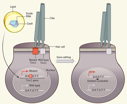 著名鋼琴家貝多芬在32歲時聽力完全喪失,其傷害不言而喻,他在留給其兄弟的遺囑中寫道,“正如落葉凋零,我的生命也已變得空洞?!?lt;/p><p> 盡管貝多芬聽力喪失的原因未知,但很多案例顯示聽力障礙實際都和遺傳DNA突變有關,而目前已知的和聽力障礙相關的基因有近100個。但迄今為止,幾乎沒有任何治療方法可以減緩或者逆轉聽力障礙。貝多芬逝世兩個世紀后的今天,阻止遺傳因素導致聽力障礙的技術離實現臨床已越來越近。</p><p> 哈佛大學醫學院耳鼻喉科副教授Zheng-Yi Chen和哈佛大學化學與化學生物學教授、美國博德研究所核心成員David R. Liu共同主導的一項研究在線發表在在國際著名期刊《自然》(Nature),該團隊用基因編輯技術治療TMC1突變“貝多芬小鼠”的遺傳性聽力障礙,并取得良好效果。</p><p> 內耳是聲音感知的最重要部位,其中內耳毛細胞又是人類聽到聲音的關鍵。其中,TMC1是內耳毛細胞中機械力傳導的重要組成部分,TMC1蛋白在內耳毛細胞的纖毛上形成通道,當聲波引起纖毛運動時這種通道就會打開,隨后鈣離子進入細胞生成電信號,電信號傳遞到大腦后形成聽覺。</p><p> TMC1發生了一種顯性負性錯義突變后,會導致內耳毛細胞單通道電流水平和鈣滲透率降低,進一步導致感音神經性語后聾(語言形成后出現聽力障礙)。通常,TMC1顯性突變患者在10-15歲時會開始逐漸變聾。</p><p> TMC1顯性突變即意味著,一對等位基因中只有一個發生突變就會導致功能喪失,從而致聾。這也就使得修復顯性突變成了一項精細的任務:必須使突變基因失活,同時還要保留野生型基因。這一對基因的差別只在于其中一個核苷酸的不同。突變的TMC1在原本野生型一個胸腺嘧啶核苷酸T的位置變成了腺嘌呤核苷酸A。</p><p> </p><center><img alt="" src="/upfiles/201903210248378799.png" width="440" height="360" /></center><p></p><p style="text-align: center;"> 基因編輯過程示意圖</p><p> Chen和Liu團隊啟用的是熱門的CRISPR–Cas基因編輯技術。研究團隊將含有Cas9和RNA的脂滴注入新生TMC1貝多芬小鼠的內耳,這種脂滴能和細胞隨后融合?;蚓庉嫼笸蛔兓蛑邢汆堰屎塑账酇被敲除,從而使該基因失活。但同時保留了野生型基因,保證正常聽力功能實現。</p><p> 研究團隊評估得出,基因編輯過的小鼠中內耳毛細胞的存活率更高、聽腦干反應閾值更低。此外,聽覺反射也出現改善,基因編輯過的成年貝多芬小鼠在聽到突發噪音時會表現出驚嚇,然而未經基因編輯的小鼠對此毫無反應。</p><p> 論文最后指出,這一治療途徑在治療和內耳毛細胞功能障礙有關的常染色體顯性遺傳聽力障礙方面具備潛力,也為反義寡核苷酸療法和RNA干擾療法提供了補充策略。</p><p> 更多詳情請登錄聽覺有道助聽器www.caosairsoft.com</p>" />
