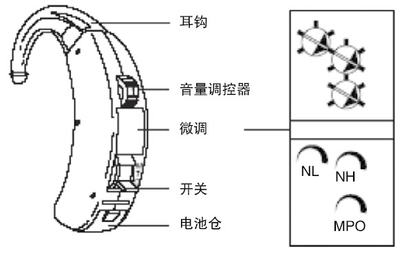 微調控制器:控制器的作用是調節放大器的參數,使得最終輸出聲音符合每位弱聽人士的放大需求。控制器可以是機械的電位器(用螺絲刀調節),也可以是寄存器(通過電腦調節參數)。微調是選配過程中最重要的部分。</p><p> </p><center><img alt="" src="/upfiles/201906100134423907.png" width="587" height="368" /></center><p></p><p style="text-align: center;">圖1 耳背式助聽器內部結構圖</p><p> 1. 開關</p><p> 傳統的耳背式和盒式助聽器一般采用“O-T-M”開關,定制機的開關常常與音量控制或程序切換按鈕合為一體。耳背式助聽器的“O-T-M”開關非常容易受潮氣影響而致使整機故障,因此新型的設計采用程序切換按鈕或電池門作開關。</p><p> </p><center><img alt="" src="/upfiles/201906100134484438.png" width="400" height="186" /></center><p></p><p style="text-align: center;">圖2 電池門</p><p> 2. 音量調控(VC)</p><p> 音量調控(VC)用于讓用戶自己調節音量。有些數字助聽器的音量調節范圍是可以通過軟件設置的,驗配師可以為用戶設置適合的調節范圍。</p><p> </p><center><img alt="" src="/upfiles/201906100134536274.png" width="383" height="283" /></center><p></p><p style="text-align: center;">圖3 音量調控器</p><p> 3. 微調</p><p> 微調電位器用于調節助聽器的輸出信號,一般由驗配師根據用戶的聽力損失設置。微調有很多種類,最常見的是頻響調節器,助聽器的頻率特性由濾波器決定,濾波特性與電阻和電容相關,為了改變助聽器的頻響,采用一個小的可變電位器來調節。</p><p> 1)NH—低頻調控:通過衰減一部分低頻成分而達到提高高頻的作用,其主要效果為低頻噪音的下降。</p><p> </p><center><img alt="" src="/upfiles/201906100135012711.png" width="494" height="336" /></center><p></p><p style="text-align: center;">圖4 NH微調的作用</p><p> 2)NL—高頻調控:通過衰減一部分高頻成分而達到提高低頻的作用,其主要效果為言語清晰度的提高和聲反饋的消除。</p><p> </p><center><img alt="" src="/upfiles/201906100135088732.png" width="498" height="340" /></center><p></p><p style="text-align: center;">圖5 NL微調的作用</p><p> 3)MPO—最大輸出限制:為了防止聲輸出過高超過弱聽人士的不適閾,大多數助聽器都有最大聲輸出限幅裝置,如削峰PC、自動增益控制AGC電路等。削峰電路就是把信號中超過某一限度的峰值部分削去,但削峰后輸出有失真,且信噪比小;AGC電路是較先進的限幅控制電路,它把大于不舒適閾的輸出聲壓縮后再輸出,因此不會帶來失真,但是壓縮需要起效時間,對于特別敏感的弱聽人士,有時采用削峰更安全。</p><p> </p><center><img alt="" src="/upfiles/201906100135141158.png" width="372" height="298" /></center><p></p><p> </p><center><img alt="" src="/upfiles/20190610013519576.png" width="374" height="293" /></center><p></p><p style="text-align: center;">圖6 削峰后帶來失真</p><p> </p><center><img alt="" src="/upfiles/201906100135242320.png" width="385" height="369" /></center><p></p><p> </p><center><img alt="" src="/upfiles/201906100135289779.png" width="351" height="307" /></center><p></p><p style="text-align: center;">圖7 壓縮保留了原信號的形態</p><p> 4)CK—壓縮拐點/CR——壓縮比:是壓縮線路獨有的微調。自動增益壓縮控制(AGC)是一種反饋裝置,能自動降低助聽器的增益而不引起失真,從而限制助聽器輸出。一旦自動增益壓縮控制起作用,在輸入和輸出之間就會建立起新的線性關系。壓縮拐點是壓縮起效所需要的最小輸入聲壓級,拐點設置得越高,助聽器就越接近線性放大;壓縮比為壓縮啟動后,輸入變化量與輸出變化量之比,壓縮比的絕對值越大,表明增益越小,當壓縮比等于1:1時表示線性放大。</p><p> </p><center><img alt="" src="/upfiles/201906100135335169.png" width="368" height="349" /></center><p></p><p> </p><center><img alt="" src="/upfiles/2019061001353878.png" width="367" height="356" /></center><p></p><p style="text-align: center;">圖8 拐點和壓縮比控制</p><p> 5)增益控制(GC)和音量調控(VC)用于調節全頻段的主聲增益,佩戴者感覺到的是整體響度的大小變化,通常VC的調節范圍小于GC。</p><p> </p><center><img alt="" src="/upfiles/201906100135431972.png" width="384" height="323" /></center><p></p><p style="text-align: center;">圖9 增益控制</p><p> 更多詳情請登錄聽覺有道助聽器www.caosairsoft.com</p>" />