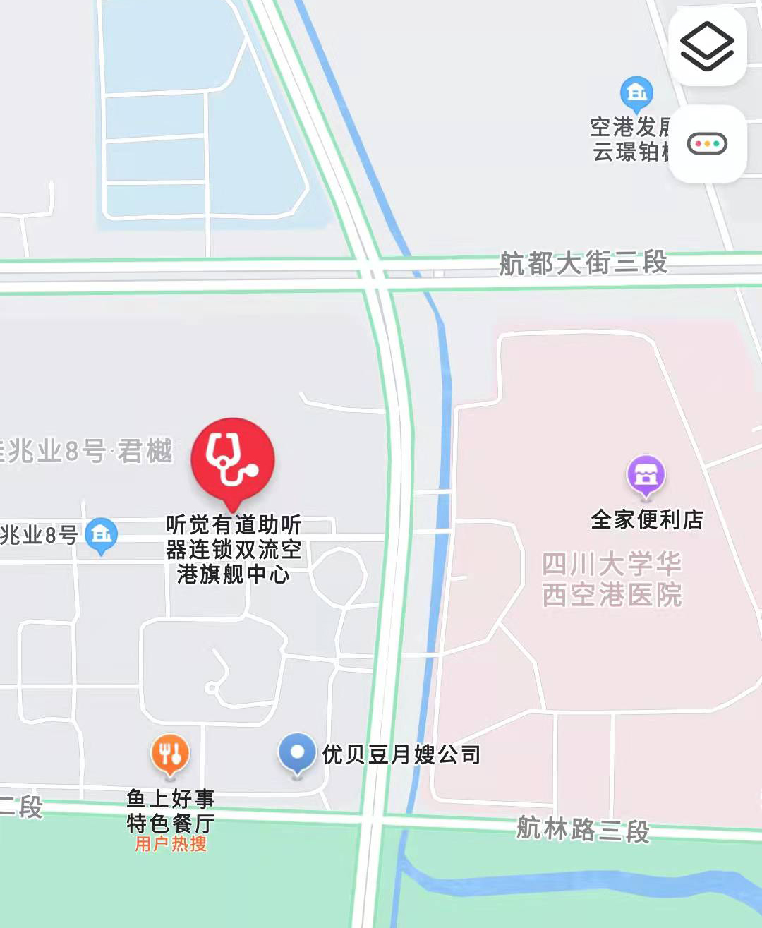 <span style="font-size:16px;"> 聽覺有道全國(guó)聽力連鎖雙流空港旗艦中心</span></div><div style="text-align: center;"><span style="font-size:16px;"><br /></span></div><div style="text-align: center;"><span style="font-size:16px;"> 正式營(yíng)業(yè)啦!</span></div><div style="text-align: center;"><span style="font-size:16px;"><br /></span></div><div style="text-align: center;"><span style="font-size:16px;"><img src="/upfiles/202112240433043799.jpg" width="640" alt="" /><br /></span></div><div style="text-align: center;"><span style="font-size:16px;"><br /></span></div><div style="text-align: center;"><span style="font-size:16px;"> 歡迎新老用戶到店咨詢</span></div><div style="text-align: center;"><span style="font-size:16px;"><br /></span></div><div style="text-align: center;"><span style="font-size:16px;"> 檢測(cè)聽力,驗(yàn)配、清潔保養(yǎng)助聽器</span></div><div style="text-align: center;"><span style="font-size:16px;"><br /></span></div><div style="text-align: center;"><span style="font-size:16px;"> 全國(guó)服務(wù)熱線</span></div><div style="text-align: center;"><span style="font-size:16px;"> 400 690 1828</span></div><div style="text-align: center;"><span style="font-size:16px;"><br /></span></div><div style="text-align: center;"><span style="font-size:16px;"> 門店電話</span></div><div style="text-align: center;"><span style="font-size:16px;"> 028-68485778</span></div><div style="text-align: center;"><span style="font-size:16px;"><br /></span></div><div style="text-align: center;"><span style="font-size:16px;"> 手機(jī)(微信同號(hào))</span></div><div style="text-align: center;"><span style="font-size:16px;"> 17380530151</span></div><div style="text-align: center;"><span style="font-size:16px;"><br /></span></div><div style="text-align: center;"><span style="font-size:16px;"> 四川省成都市雙流區(qū)東升鎮(zhèn)佳居路89號(hào)(雙流空港醫(yī)院正對(duì)面)</span></div><div style="text-align: center;"><span style="font-size:16px;"><br /></span></div><div style="text-align: center;"><span style="font-size:16px;"><img src="/upfiles/202112240433297719.jpg" width="640" alt="" /><br /></span></div><div style="text-align: center;"><span style="font-size:16px;"><br /></span></div><div style="text-align: center;"><span style="font-size:16px;"> 乘坐801、803、502、563路公交,“雙流空港醫(yī)院站”下</span></div><div style="text-align: center;"><span style="font-size:16px;"><br /></span></div><div style="text-align: center;"><span style="font-size:16px;"> 歡迎蒞臨到店</span></div><div style="text-align: center;"><span style="font-size:16px;"><br /></span></div><div style="text-align: center;"><span style="font-size:16px;"> 專業(yè)驗(yàn)配師</span></div><div style="text-align: center;"><span style="font-size:16px;"><br /></span></div><div style="text-align: center;"><span style="font-size:16px;"> 知名品牌助聽器</span></div><div style="text-align: center;"><span style="font-size:16px;"><br /></span></div><div style="text-align: center;"><span style="font-size:16px;"> 十大免費(fèi)服務(wù)項(xiàng)目</span></div><div style="text-align: center;"><span style="font-size:16px;"><br /></span></div><div style="text-align: center;"><span style="font-size:16px;"> 近30年行業(yè)經(jīng)驗(yàn),門店覆蓋百余城市</span></div>" />