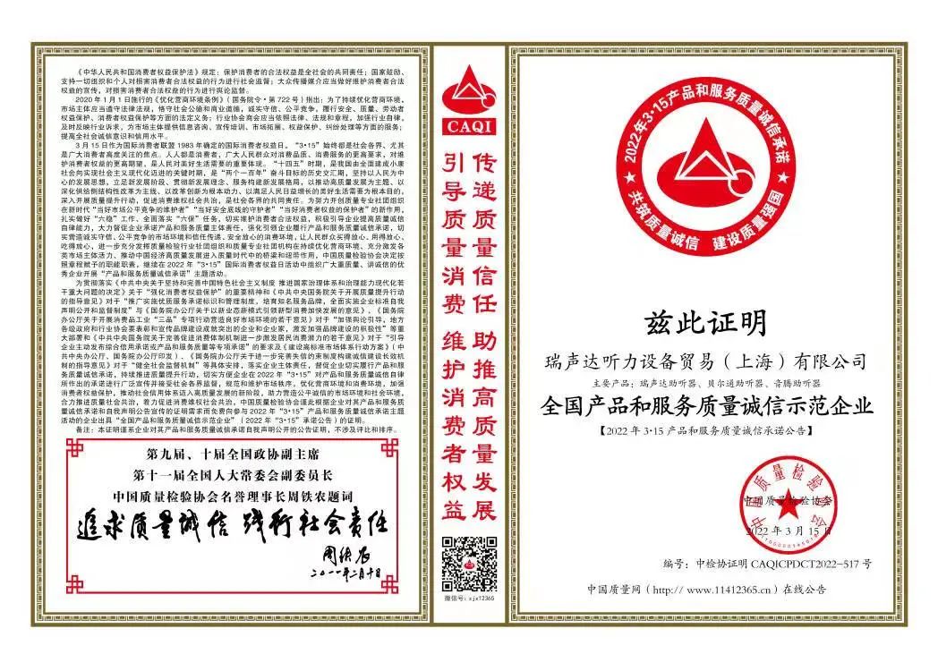 <span style="white-space:pre"> </span>科技飛速發(fā)展,產品、品牌的多元化給用戶帶來豐富選擇的同時,也令很多不少用戶面臨難以取舍的困境。2022年瑞聲達聽力設備貿易(上海)有限公司攜旗下多個品牌(貝爾通、瑞聲達、音騰)再再再次獲得中國質量檢驗協會頒發(fā)的多項榮譽證書,對消費者而言無疑是一顆定心丸。<br /></span><p style="text-align: center;"><img src="/upfiles/202203160932568483.jpg" width="640" alt="" /><br /></p><span style="font-size:16px;"> 中國質量檢驗協會是國家市場監(jiān)督管理總局主管下的質量檢驗行業(yè)組織和質量專業(yè)機構,為充分發(fā)揮名優(yōu)企業(yè)、消費者之間的橋梁和紐帶作用,向廣大消費者提供權威可靠的質量信息,切實維護廣大名優(yōu)產品生產企業(yè)及消費者的合法權益。<br /><br /> 2022年中消協將消費維權年主題定為“共促消費公平”,強調實現更有保障消費公平;積極引導“科技向善”。作為深耕聽力健康領域多年的企業(yè),貝爾通一直堅持產品至上,客戶為中心的理念,積極履行企業(yè)社會責任,未來我們將繼續(xù)以高標準約束自身,賦新行業(yè)。<br /></span><p><span style="font-size:16px;"><br /></span></p><p style="text-align: center;"><span style="font-size:16px;"><img src="/upfiles/202203160926451939.jpg" width="640" alt="" /><br /></span></p><div style="text-align: center;"><span style="font-size:16px;"> 全國產品和服務質量誠信領先品牌</span></div><p><span style="font-size:16px;"><br /></span></p><p style="text-align: center;"><span style="font-size:16px;"><img src="/upfiles/202203160927066008.jpg" width="640" alt="" /><br /></span></p><div style="text-align: center;"><span style="font-size:16px;"> 全國消費者質量信譽保障產品</span></div><div style="text-align: center;"><span style="font-size:16px;"><br /></span></div><div style="text-align: center;"><span style="font-size:16px;"><img src="/upfiles/202203160927319978.jpg" width="640" alt="" /><br /></span></div><div style="text-align: center;"><span style="font-size:16px;"><br /></span></div><div style="text-align: center;"><span style="font-size:16px;"> 全國聽力行業(yè)質量領先企業(yè)</span></div><span style="font-size:16px;"><br /> 這一份份頗具含金量的證書,不再只是國家與公眾對瑞聲達及其旗下多個品牌(貝爾通、瑞聲達、音騰)的高度認可,也是鞭策我們繼續(xù)前行的極大動力,敦促我們持續(xù)為更多用戶提供優(yōu)質的產品與貼心的服務。<br /><br /><br /> 來源:美國貝爾通助聽器</span>" />